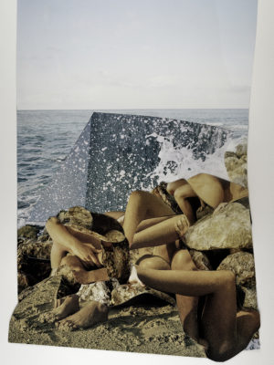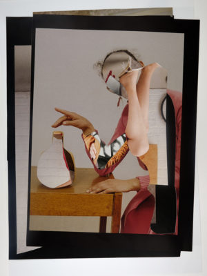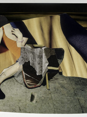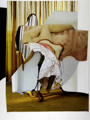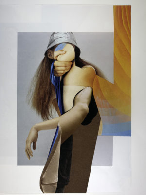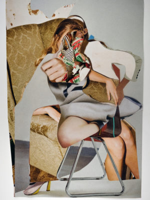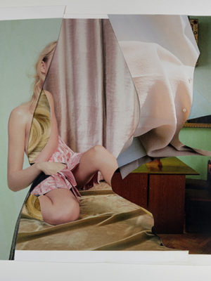 I make hand-cut, analog collages using found imagery sourced from magazines and books. I enjoy the tactile quality of the paper and the act of cutting into it, as well as the physical restrictions of using what I can find, and so I choose not to work digitally.