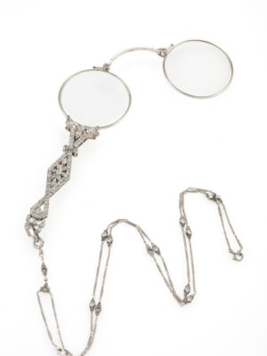 One key technical innovation, accomplished in 1900, made this delicate yet extravagant style possible: the invention of the oxyacetylene torch, which enabled the commercial use of platinum for the first time since the metal’s discovery. Platinum—lighter and stronger than gold and, unlike silver, resistant to tarnish—became the premier choice for the elaborate, lace-like, diamond- and pearl-studded jewellery fashioned in delicate bows, garlands, and ribbon-like forms that adorned the lightly hued, highly embroidered velvet and satin womenswear of the day.