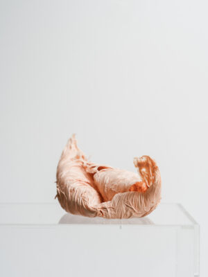 ‘As humans, we are the carriers of our identity. Among many physical and non-physical traits, our skin acts as a visual vessel that categorises our social status and body image. Skinny/fat, young/old, well maintained/neglected: these are just a few of the contrasting labels that can be identified through our skin. The objects he created and the materials he used contain an inherent tension. They are hybrids of aesthetics that contrast the binary notions of attraction and repulsion. Skin, in this broader context, is not only examined as a human feature but also in relation to plant life, animals, materials and objects.’