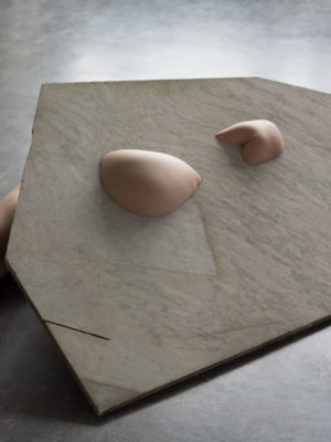 ‘The marble has only been ‘touched’ where the connection point is between the two materials, leaving the trace of the skin so to say. After wearing them the stone also leaves its trace on my skin through its weight. Nevertheless I find it difficult to catergorize the work as there are many layers to it.