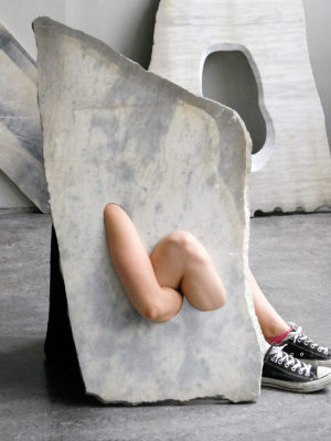 Marble as a material plays an important role in the context of my family. I grew up with the material in the sculpting school of my father which is located next to the only marble quarry in Switzerland. As soon as I work with this material I have to deal with the fact that I would be the fourth generation of sculpting in stone within my family. This personal context comes back in my work ‘Weight Of Four Generations’ in which I place a big piece of marble onto my leg. Through this interaction I claim my personal ‘space’ within this context.