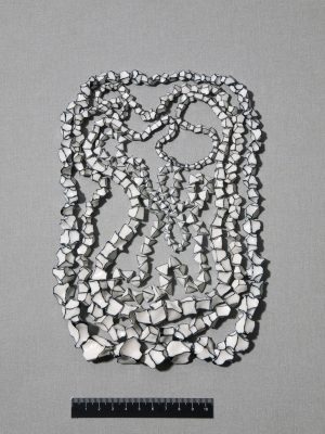 MvK: The image archive in the book is not a historical reference, and I have no didactic intentions with it at all. Most of the collected images I used in it are not literally jewellery related, they show the basic principle of the beaded necklace as I see it in all kinds of other things; from a supernova in the universe to the smallest particle of tangible matter. I’ve always collected images like these alongside making my necklaces and I was thinking of this collection in similar terms as Charles and Ray Eames’ Powers of Ten project* but in the specific context of the beaded necklace. The process of collecting can often work both ways: the making of necklaces informs the search for images, and some of the images that I find subsequently inform the work. While thinking of making a book about this work, it made sense to give the images a place in it as well, not as an illustration of the work, or something the work needs because it wouldn’t be able to stand on it’s own two feet, but as a way to show another part of the working process in the context of a book.