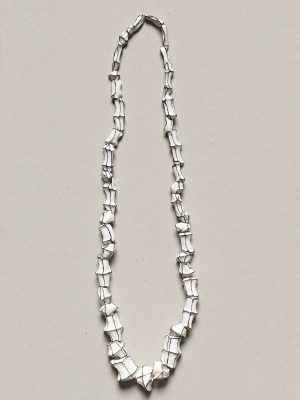 I have to admit it has become a bit compulsive, although I’d like to think I’m still the one who is “pulling the strings”. When I was studying I struggled with the way I felt that contemporary jewellery practice was increasingly talking about the maker before addressing anything else. I was looking for a more universal starting point for my work, and trying to find a piece of jewellery that was the total opposite of everything we were taught in art school. That’s how I started working with pearl necklaces. Over time this has developed into a big love of beaded necklaces, which is a bit like a relationship, really: it’s hard work! (all the rest of the clichés apply to this form of relationship as well). I’ve made a lot of other works that were based on different archetypes; both jewellery and objects, but I always kept returning to the bead necklace. Whenever I work with a material or process that I haven’t used before it usually results in a new version of that same thing. Of course this doesn’t solve any problem, nor does it answer all my questions; I still don’t know how much authorship jewellery needs, and I think if anything my work is an on-going process of moving back and forth between doing more and less, searching for a space somewhere between the general and the personal, a space that is mine but that can be used by others as well; between me as a maker and the jewel as an object that has a history and significance of its own, and has to offer a space for someone else to identify with it and to wear it as an extension of their personality.