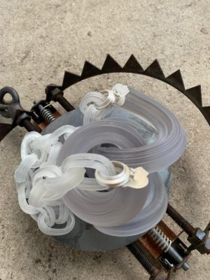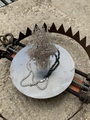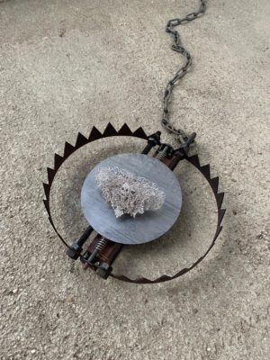 The work is set into a trap placed on the ground, quietly waiting for a visitor. The exhibition will be held in a wonderful space called ‘Atelier Rosa’, and will be lit by sunlight only – as if in nature. It is a quiet space that is perfect for confrontational works. This space will be used for jewellery displays for the first time.