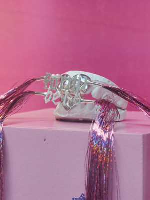 Liisbeth Kirss and Valdek Laur staged their works like a quarrel. Kirss’s candy-pink grillz and fleshy, maximalist pieces shimmered with feminine audacity. Her jewellery felt exaggerated on purpose, as if she were reclaiming everything women are often told to tone down. Every curve, every glossy surface seemed to say: look at me, I exist unapologetically! On the other hand, Laur’s rough textiles and bull imagery carried a different weight – the kind of worn-out masculinity that’s too tired to keep pretending it’s unbreakable. His pieces exposed the fatigue behind bravado, that point where strength begins to look like a mask stretched too thin.