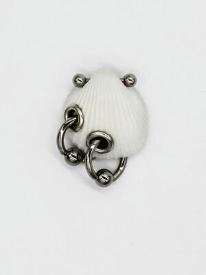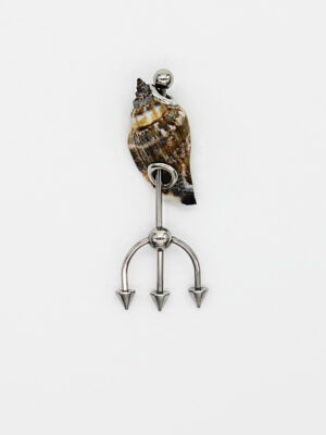 Kinetic Earring, handcrafted from a real sea shell. Using adapted stone-setting techniques and shell lapidary. No two pieces are alike. Shell, surgical steel, chrome-plated brass, sterling silver ear post.