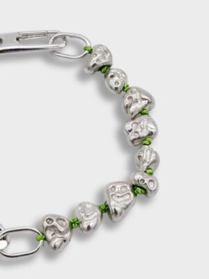 Each lil head has been hand carved in wax, before being cast into recycled sterling silver, no two are the same. They are threaded on silk using a classic pearl stringing technique.