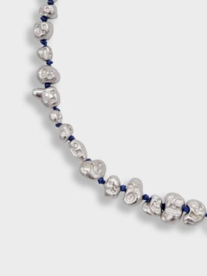 Each lil head has been hand carved in wax, before being cast into recycled sterling silver, no two are the same. They are threaded on silk using a classic pearl stringing technique.