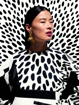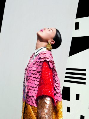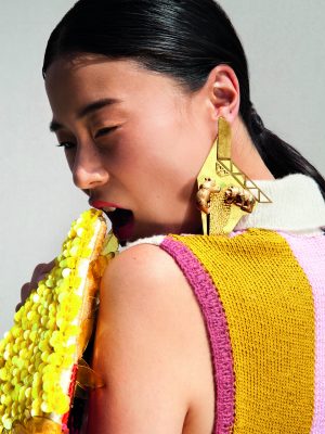 We spotted Raffaela Grasspointner’s collection Razzle Dazzle Panda Puzzle in mid-June 2013 at the graduation show of the Fashion Department, Royal Academy of Arts, Antwerp. Everything, from the voluminous plasticky garments to the bold detailed jewellery, was terrific. Grasspointner managed to achieve a fun mix of ethnicity and modern geometric elements in one collection rustling with sequin bedazzle!