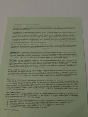Carlos Irijalba (ES) investigates the physical properties of a given terrain. Using the environment as a material in his work, his practice is primarily three-three-dimentional and interventional, the outcome of which is recorded in photographs and videos. A work that is sceptical about human culture – it uses the states of matter to place the human scale in relation to other existing dynamics, such as geology. Another space of flows that opens relative velocities and materializations.