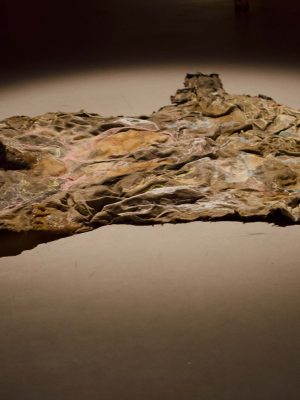 Oscar Abraham Pabón (VE) seeks the sculptural in the quotidian by using the geometric qualities of fabric and other organic materials as the basis for a modern aesthetic. Anything from Persian rugs to towels moulded into shape with Maizena and photocopies of his own hands can function as a geometrical sculpture or architectural model. Pabón translates his concern for detail into large-scale designs meant for public spaces, thus synchronizing the functional with the ornamental.