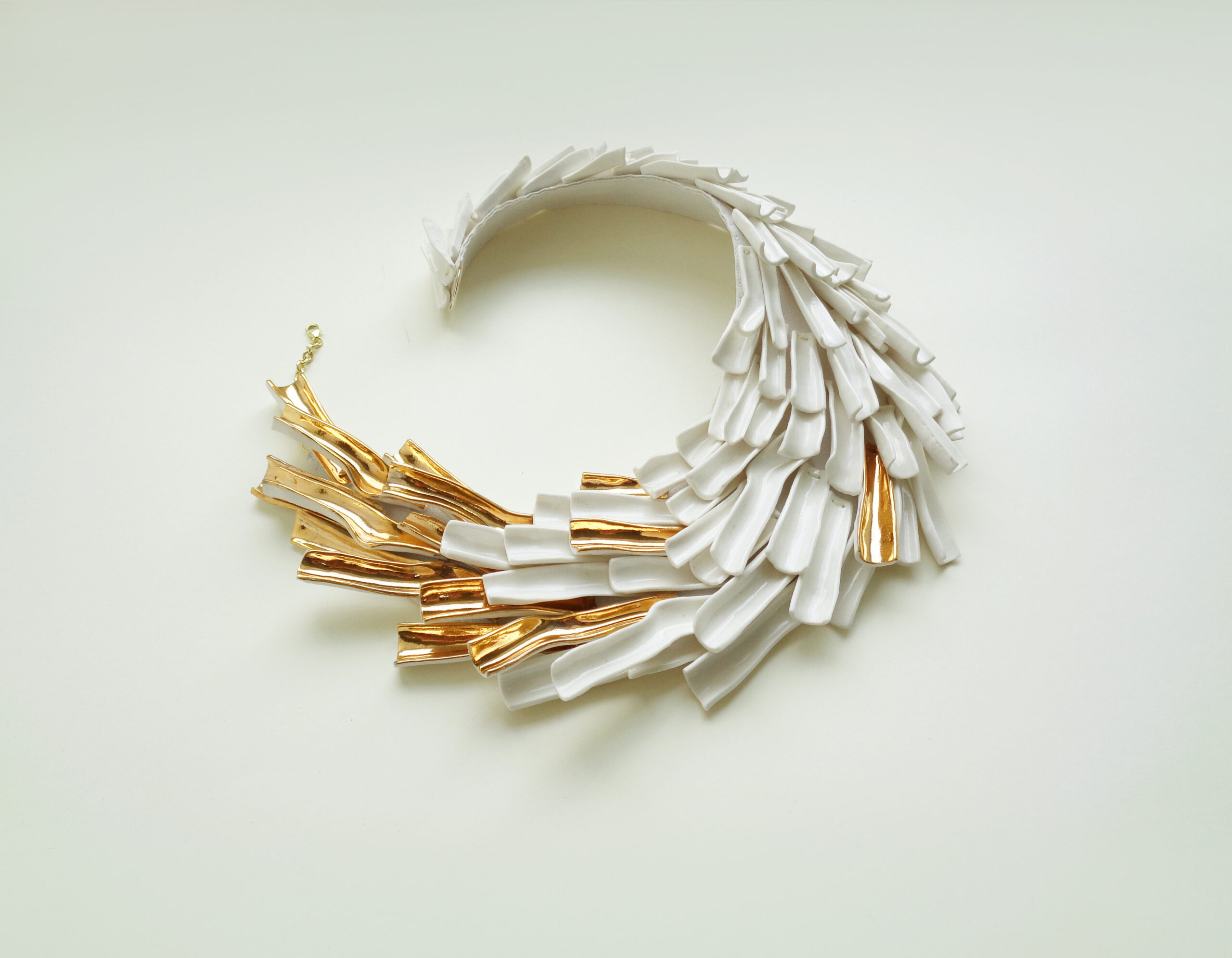 Buzura’s jewellery is a quintessential example of the standard and creativity one will find at the fair. According to the designer, her practice of working with porcelain to create fluid forms is a translation of her personal experiences, which she then eliminates the hints of as she creates. She calls these pieces Wearable Art Installations. Her work is jewellery as a metaphor, swirling with textural adventures and flashes of gold.
