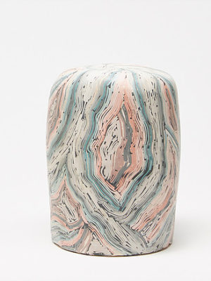 Alice makes one-off original ceramics, exploring complex and intense surface textures over simple forms, which have been inspired by street furniture and architecture. She uses a landscape of objects, formed from individual components to create abstract scenes. The repetitive nature of mark making mimics the constant review of certain objects on daily commutes. To reference she combines collaged photography and drawing from memory which is bought into the studio to work from. This takes her work away from the literal street inspiration and into an imaginary collection of objects.