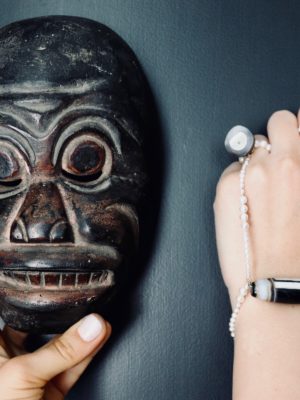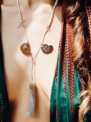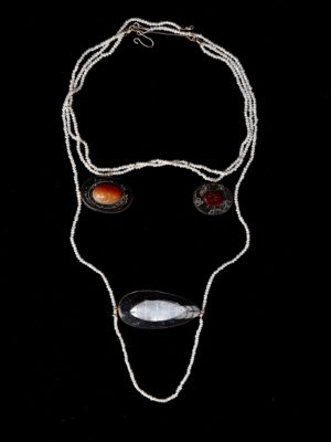My collection is about stream of consciousness and memories. Getting inspired by objects on Sigmund Freud’s desk and by pareidolia, the subconscious tendency to see familiar patterns, particularly faces, in unfamiliar objects. My collection is constructed with different characters referring to mythology and history, I have created a story line of personified pieces, each of them made of materials sourced by myself from different travels, which defy traditional classifications such as man-made and natural.The journeys that they have undergone coalesce within the pieces to suggest an underlying connectivity.