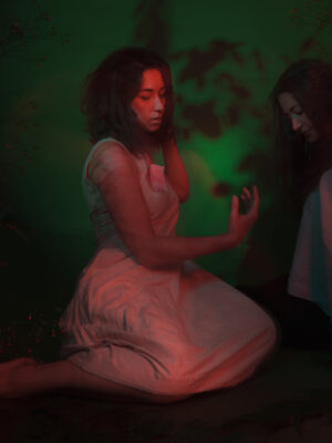 Away in the hut are voices, you can’t hear or reply.
