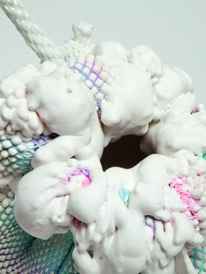 Chen Chen: The reason our collaboration works is that no matter the aesthetic, we are true to the materials and the process. Our design is in the process. Kai’s CNC stools are designed specifically to maximize the number of components one sheet of plywood can yield. It’s about efficiency. My Swell vases are also about efficiency. They are made by taking a netted spandex bag and spraying foam into it. A simple process that takes one minute but yields an extremely complex form.