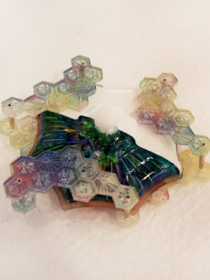 QW: I don’t like to be classified by working in one specific area. I think my pieces are the perfect example in explaining this because they contain goldsmithing skills alongside new innovations in material to interpret my subject matter. During my experiments, I have tried several types of materials like resin, glass, acrylic, Polypropylene and types of metal which also coordinate with the techniques like thermal transfer of the colour pattern, the forming of acrylic objects, and laser cutting of the acrylics.