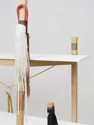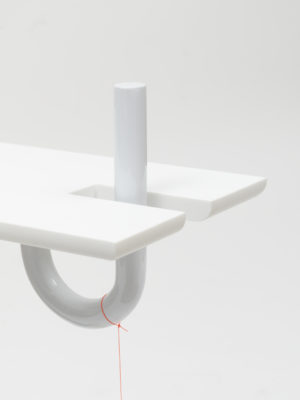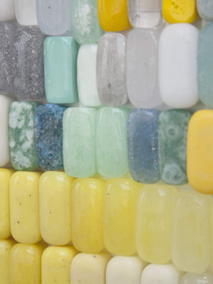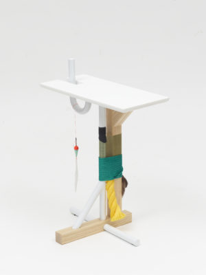 Since the trip, I have continually worked on ‘exercises’ and examinations on how to translate shapes, materials and details from the harbour and the coastal environment. The objects vary from furniture with abstract functions, sticks arranged with ropes and collected objects, porcelain pebble stones, ocean like glass vases and furniture referring to the harbours in Iceland.